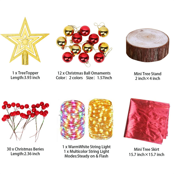 Convenient and easy to install: Artificial Mini Christmas Tree Exporter is easy to install in minutes: insert the stand, pull the ends, and style it the way you want All the decorations on the tree are individually packaged, so you can decorate the Artificial Mini Christmas Tree Exporter to your heart’s content and easily get the perfect look you want.