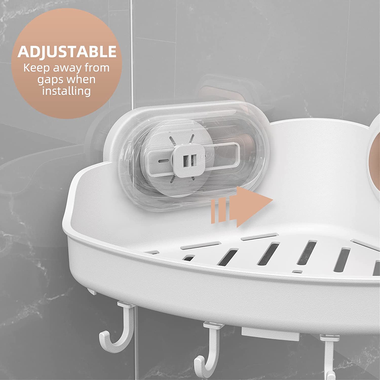 【One Second Installation】- Bathroom Shower Shelf Supplier created this corner suction cup shower caddy which is crafted from ABS plastic material for durability and long-lasting use. Just use your palm to push down on the shower basket suction as hard as you can for one second. With no drilling, no hardware and no damage to your wall, the shower caddy can achieve traceless installation, provide extra stability and put your things within easy reach in your daily time.