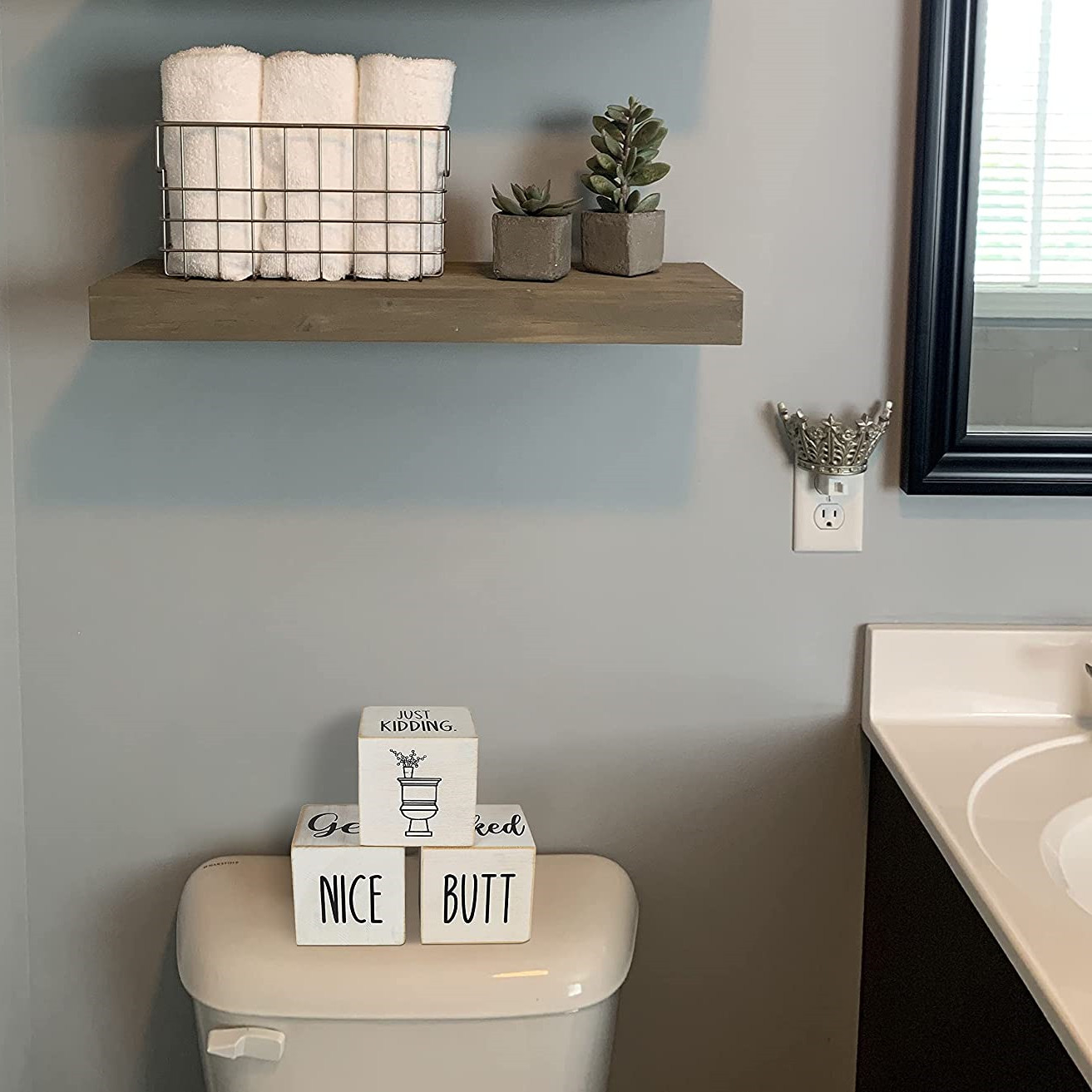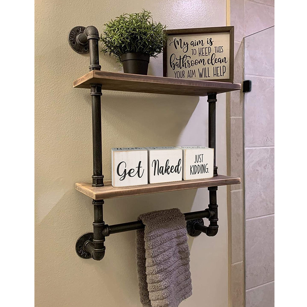 【FOUR-SIDED FUNNY SIGNS】- Printed with four-sided funny signs, Get naked, Nice Butt, Hello Sweet Cheeks and Wash Your Hands.The farmhouse rustic blocks decor is in unique design that could bring funny and relaxing feeling for room atmosphere. Bathroom Tabletop Supplier believe this is a good way to make the first-visiting guest laugh happily, thinking that you were cheerful and outgoing, feeling relaxed and getting closer.