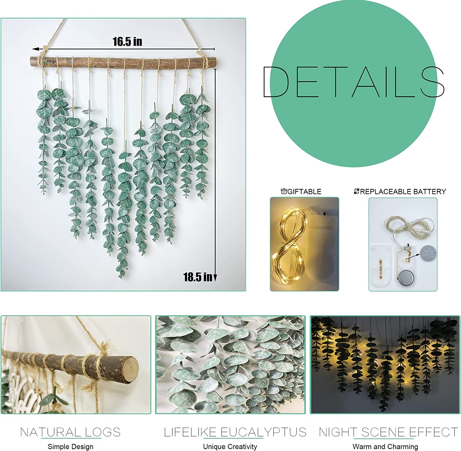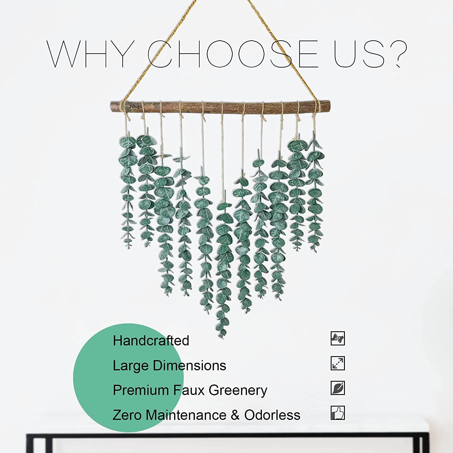 WORTH THE PRICE – this hanging wall eucalyptus plant is 100% handmade, well selected rustic wooden stick and greenery vines are hanged together by our lovely workers one by one, hand by hand. You may see small differences between each other, it is normal because every procedure is handmade and takes us lots time to finish.