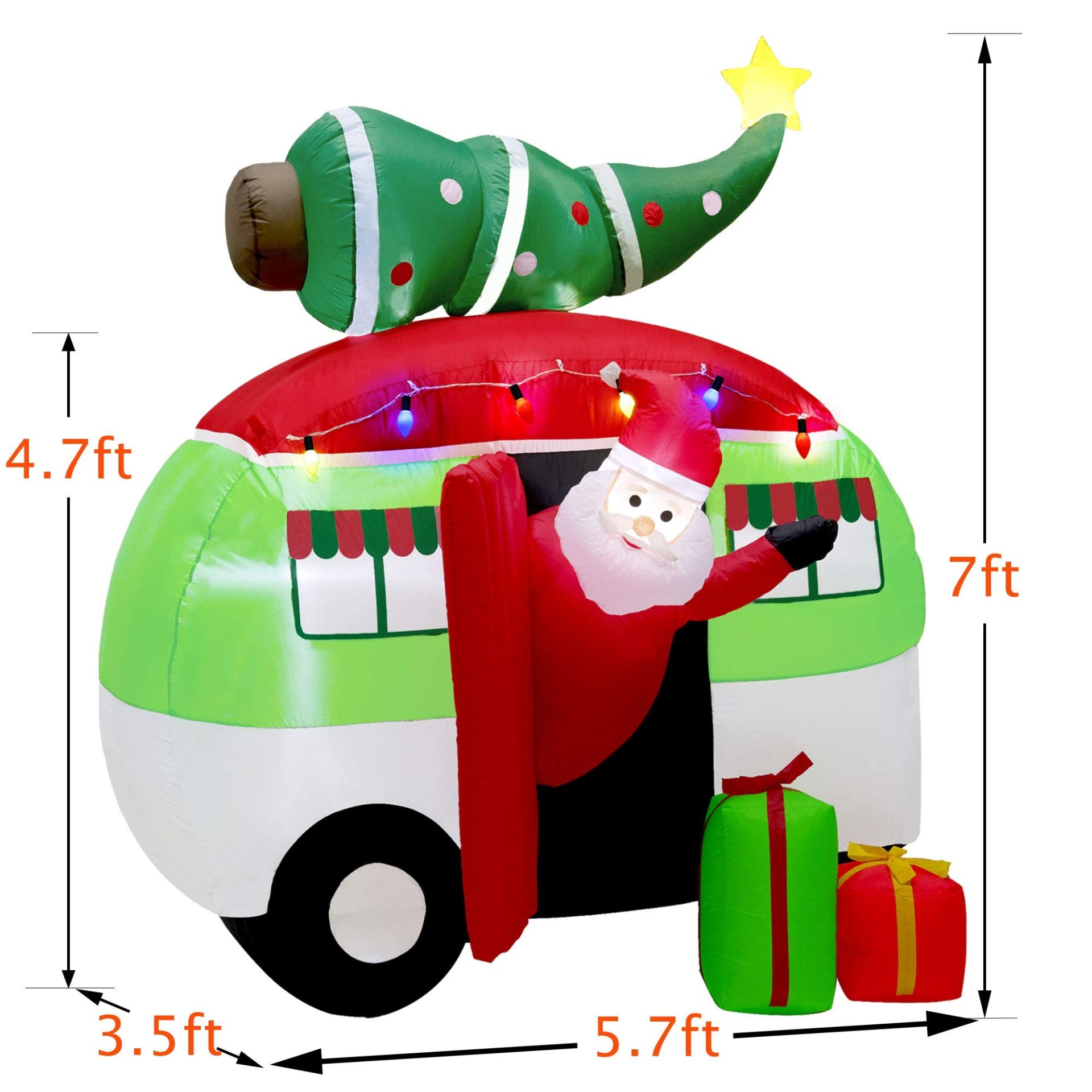 Perfect Christmas Yard Decoration: This 7ft Christmas inflatable Santa Claus driving a car which carried a Christmas tree on top and decorated with giftboxes, it is the best choice as Christmas blow up yard decorations, it is the perfect size to stand indoors or outdoors for Christmas outdoor garden yard decorations, will delight all your neighbors and guests.