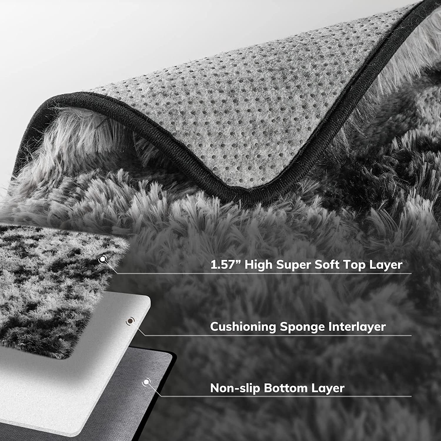 Ultra-soft area rug — Feature 1.57” shag carpet surface, the soft area rug is incredibly soft with a high-density sponge interlayer. No more shedding faux fur and an upgraded non-slip bottom. The high-density small and durable anti-slip dots at the bottom enhances friction to prevent it from sliding. No need for an additional pad underneath. Please note: water under the rug can cause it to slip. Keep the bottom of the rug dry.