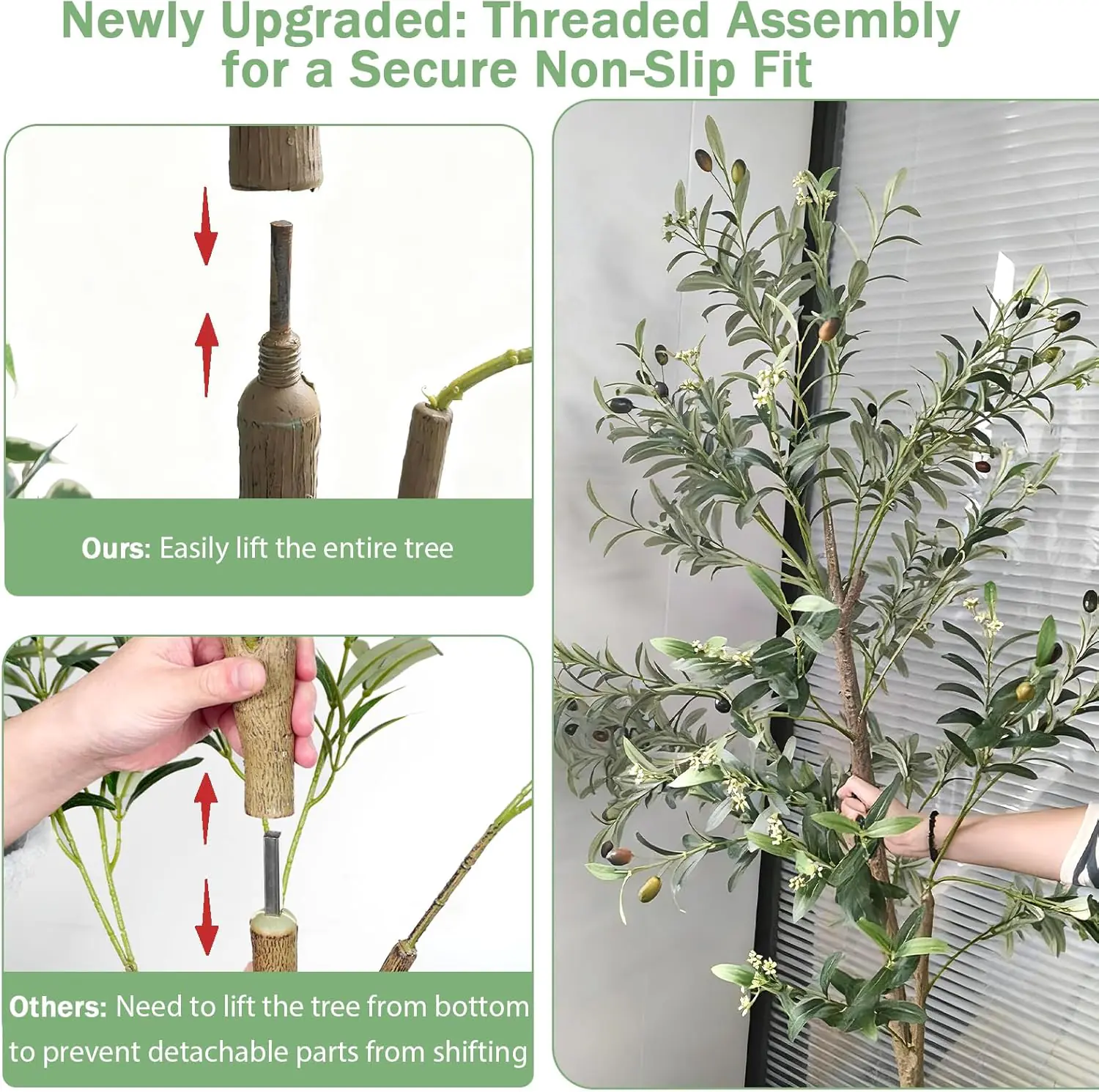 High-Quality Materials: Made from non-toxic, odorless, and durable materials, our artificial olive tree ensures safety and longevity for commercial use.