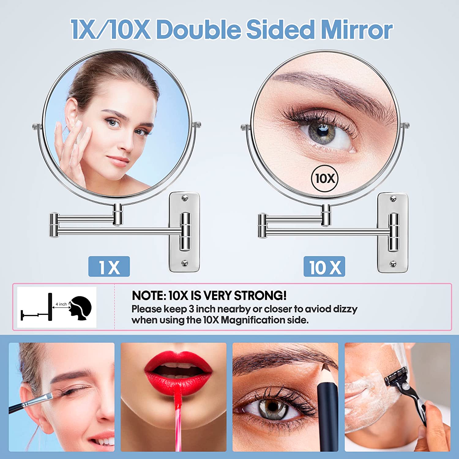 1X/10X Double Sided Wall Mirror