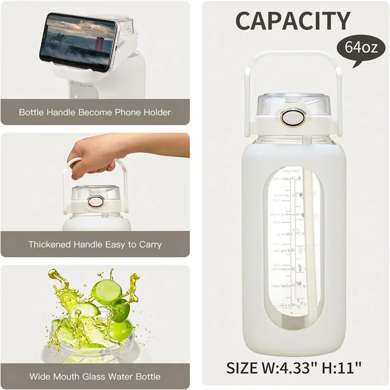 As a professional Straw Water Bottle Supplier, we provide a premium 64oz Glass Straw Water Bottle designed for brands, retailers, and distributors seeking high-quality hydration solutions. This large-capacity bottle is made from durable borosilicate glass and comes with a reusable straw, making it ideal for promoting sustainable drinking habits. Its 64oz size helps end users easily track daily water intake, making the bottle a top choice for fitness markets, homeware categories, and lifestyle brands.