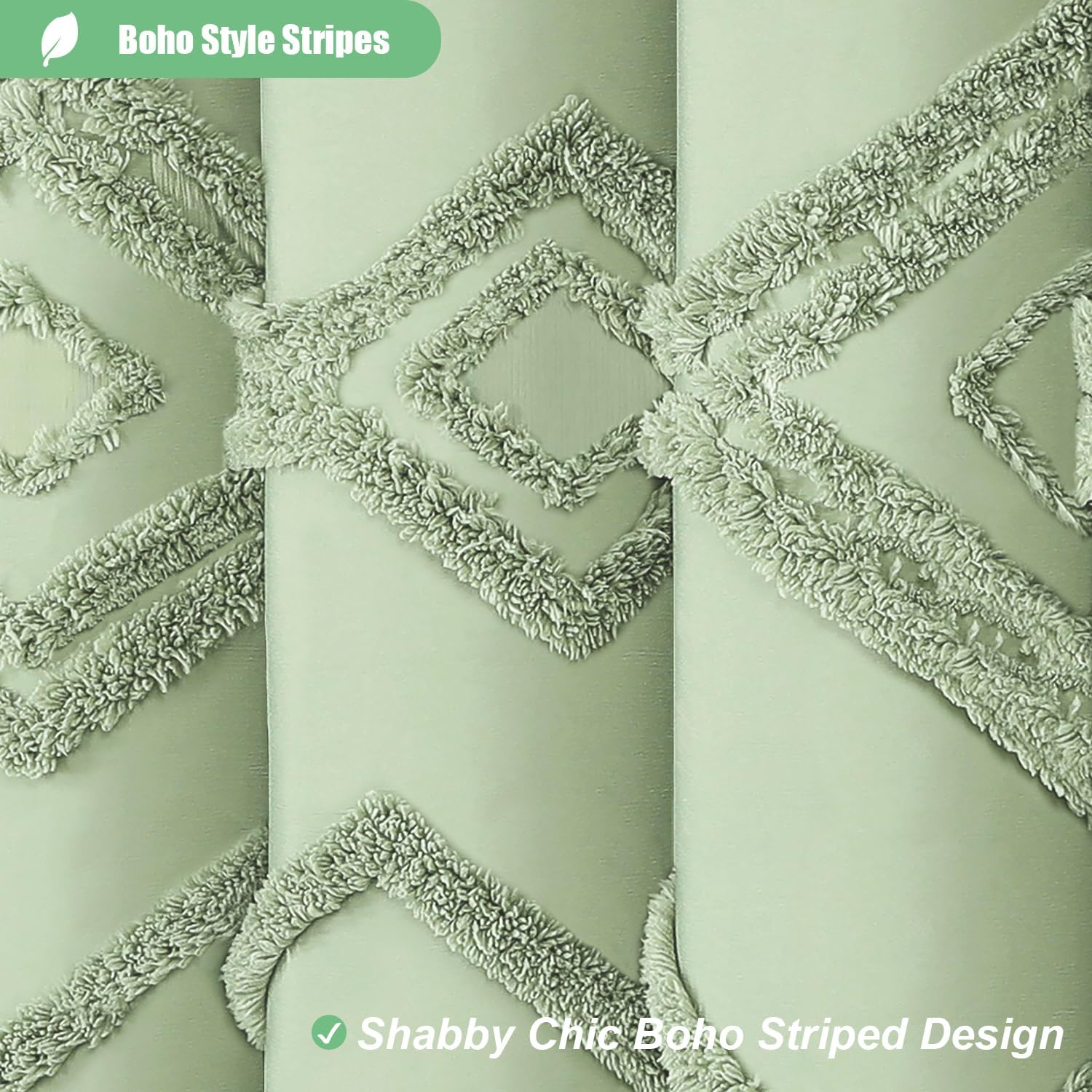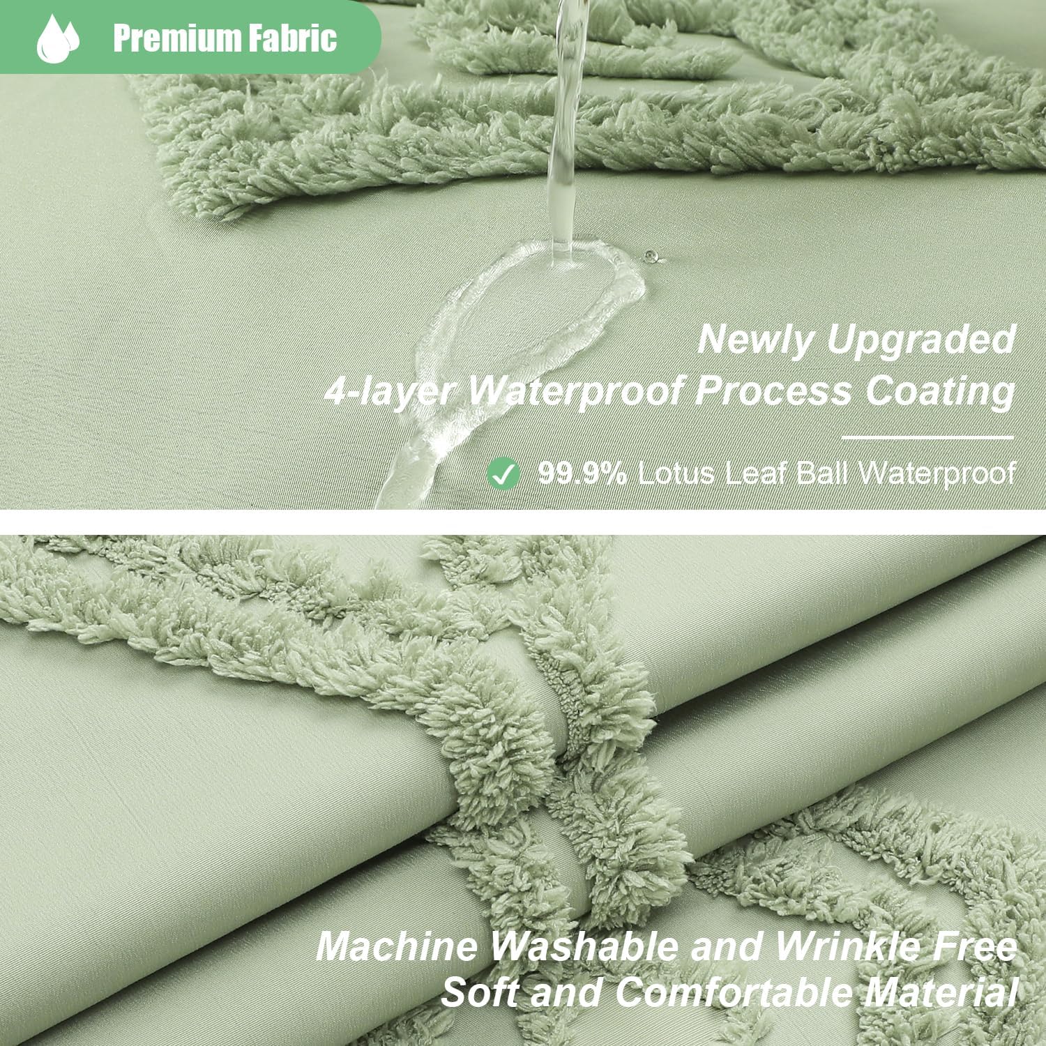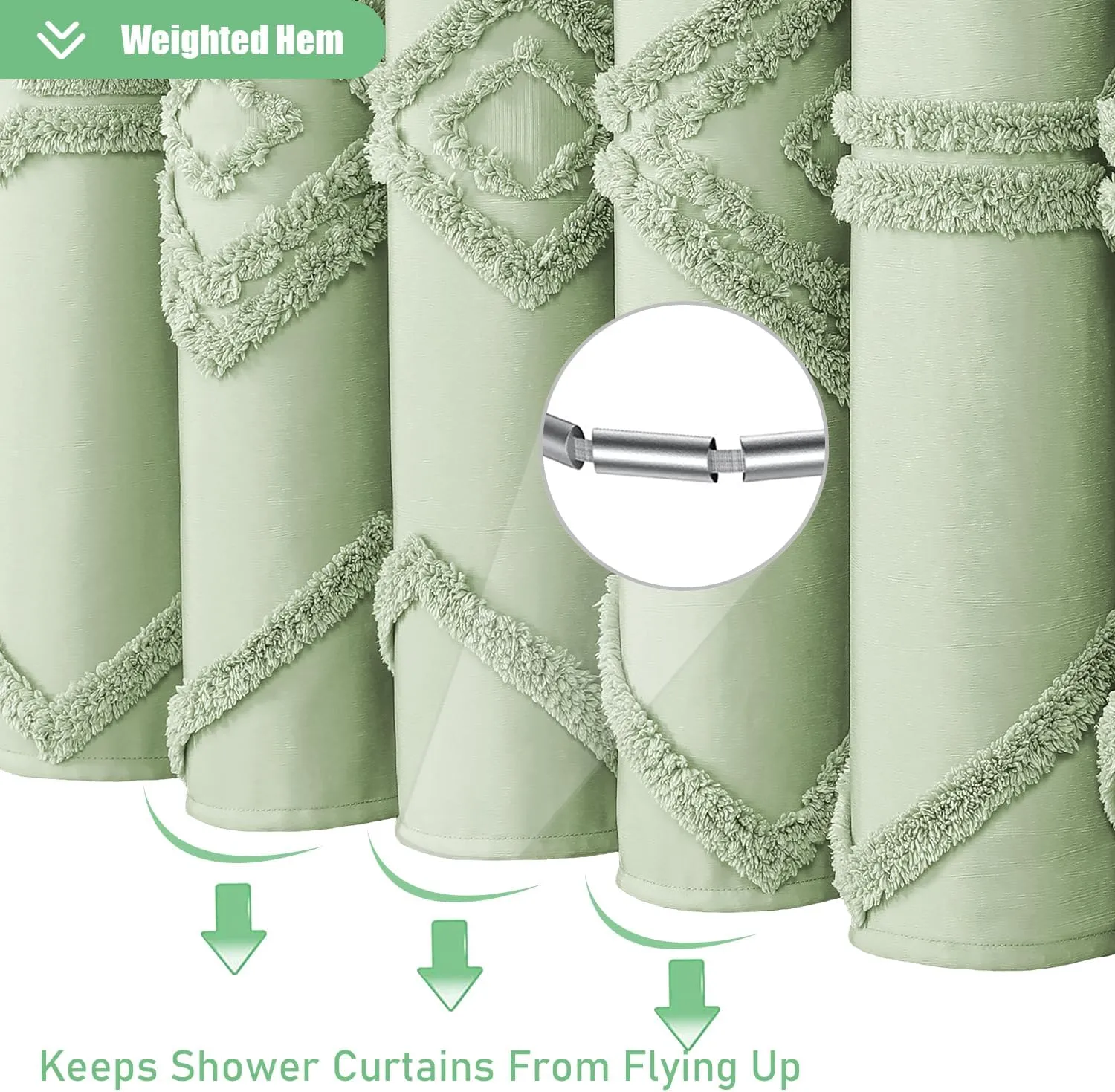 【 Fabric Shower Curtain with Tufted Geometric Stripes 】 This sage green shower curtain for bathroom is a great combination of boho geometric patterns and stripes, making it suitable for diverse decoration styles, like modern farmhouse, minimalist, simple, bohemian, shabby chic styles. These unique geometric stripes are exactly as shown, which can add a boho touch to your master bathroom, guest bathroom or hotel spa. Choose it, you won’t be more pleased!