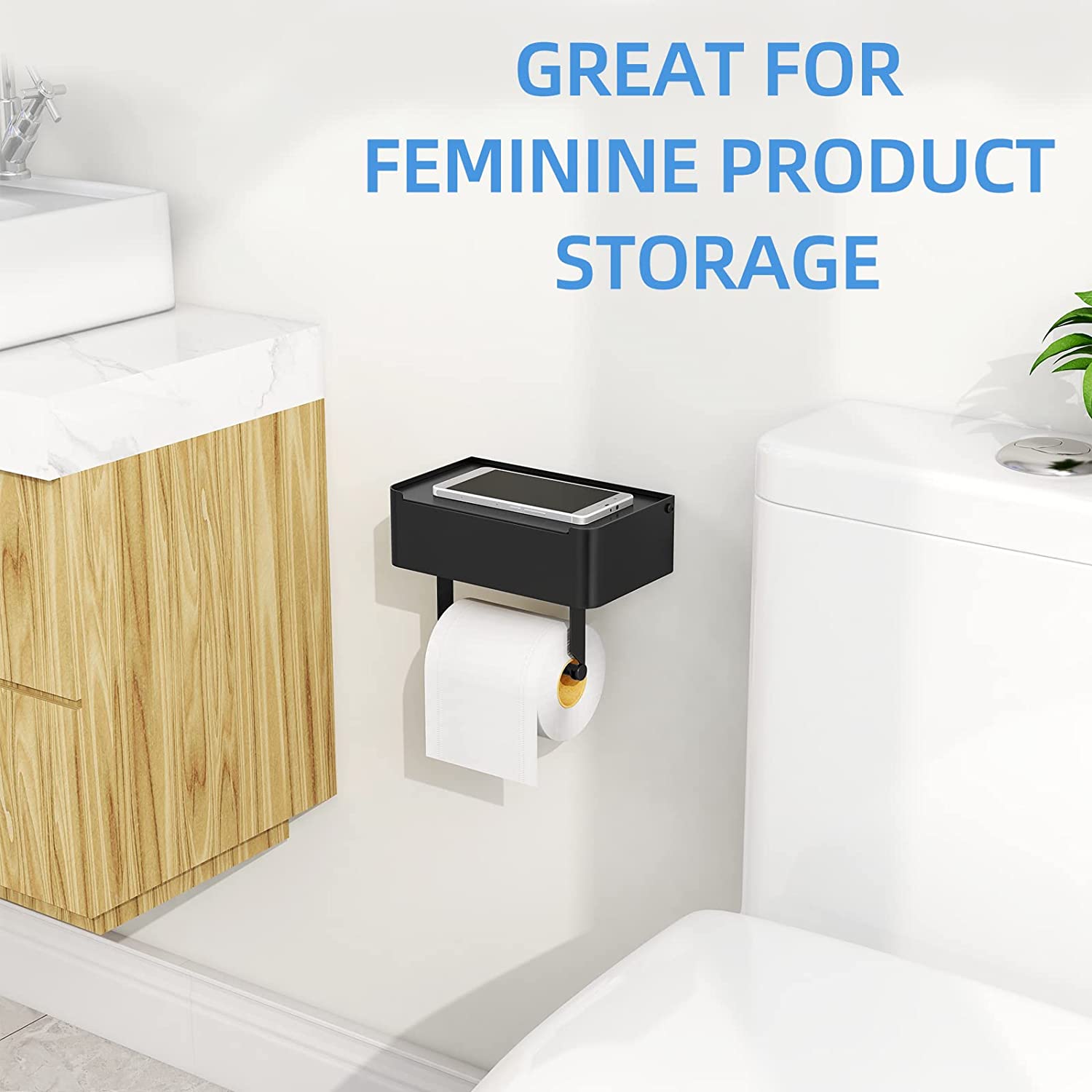 STYLISH MODERN DESIGN】Bringing elegance and convenience to your bathroom with an extra sleek privacy compartment to your toilet paper holder. Perfect for discreetly storing your flushable wipes, feminine products, and other bathroom essentials.